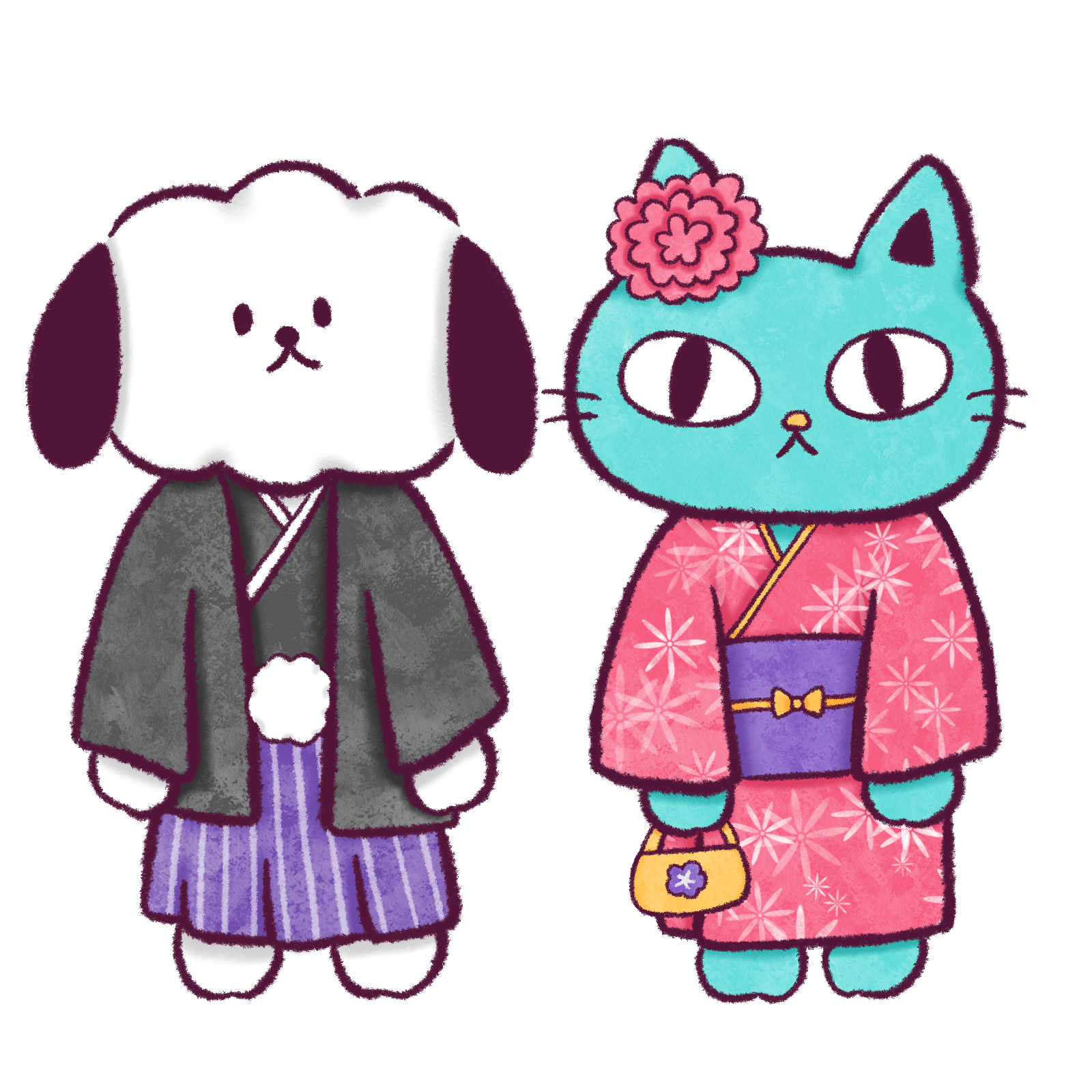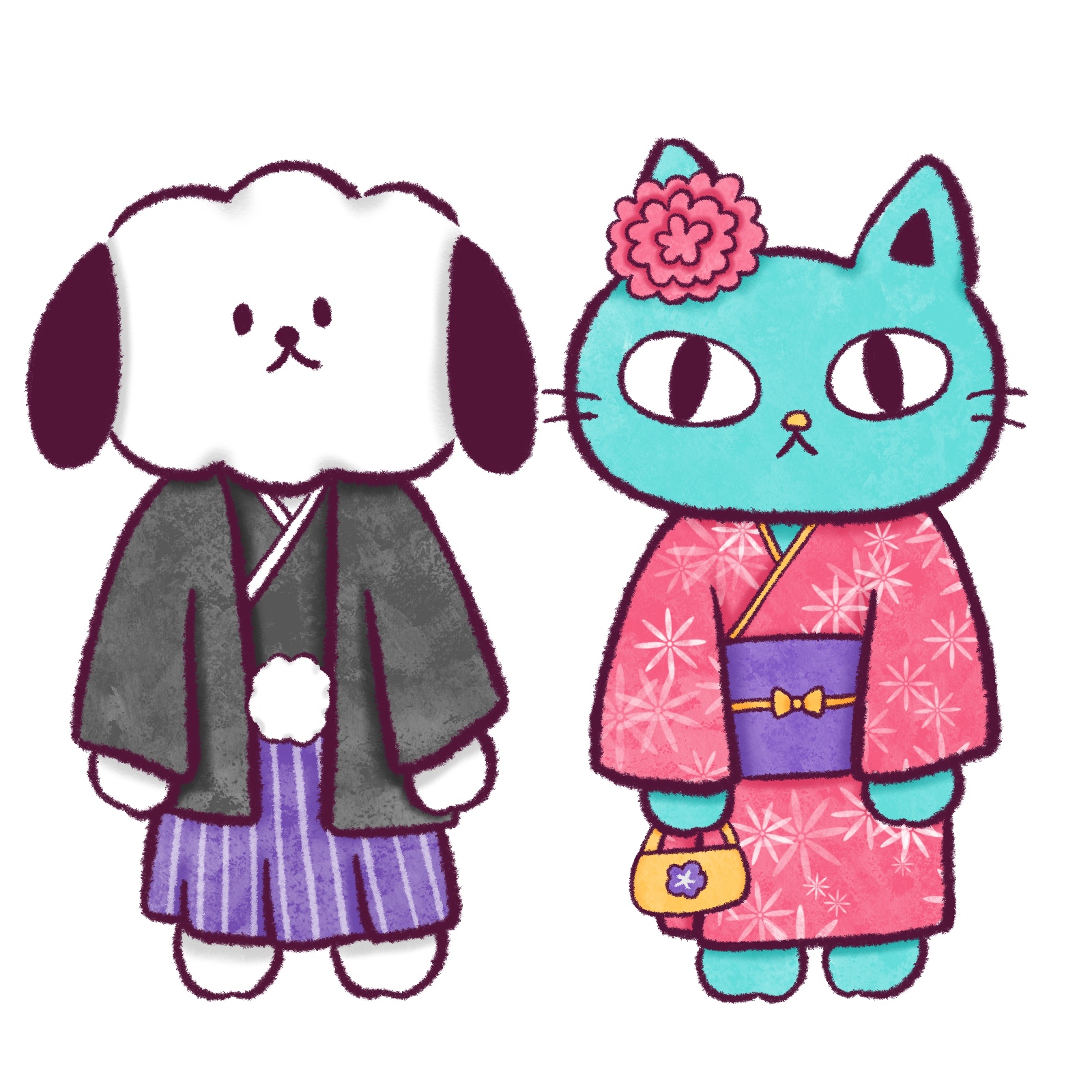 成人式の犬と猫のイラストだよ。