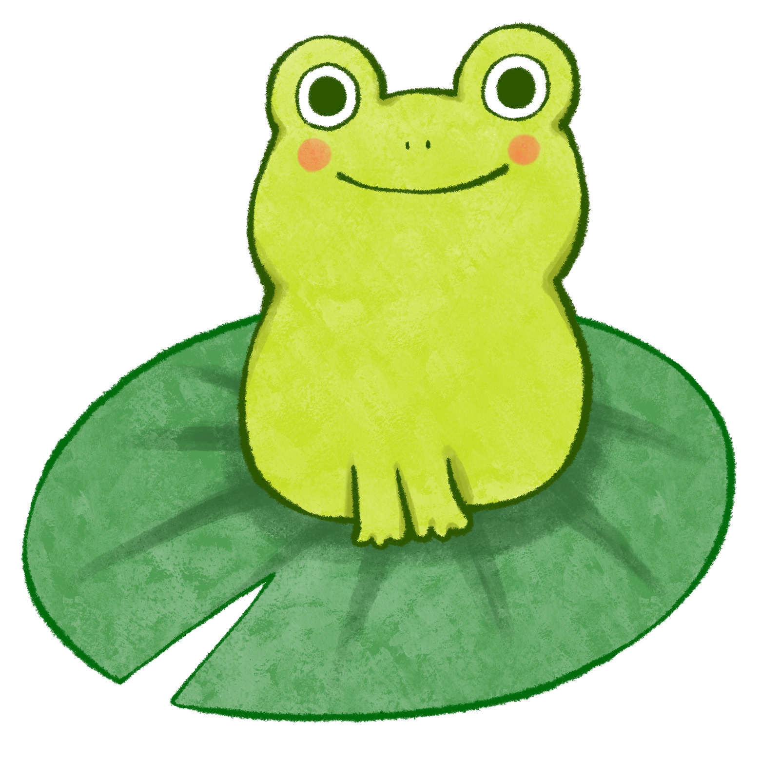 蓮の葉っぱに乗ったカエルのイラストだよ。