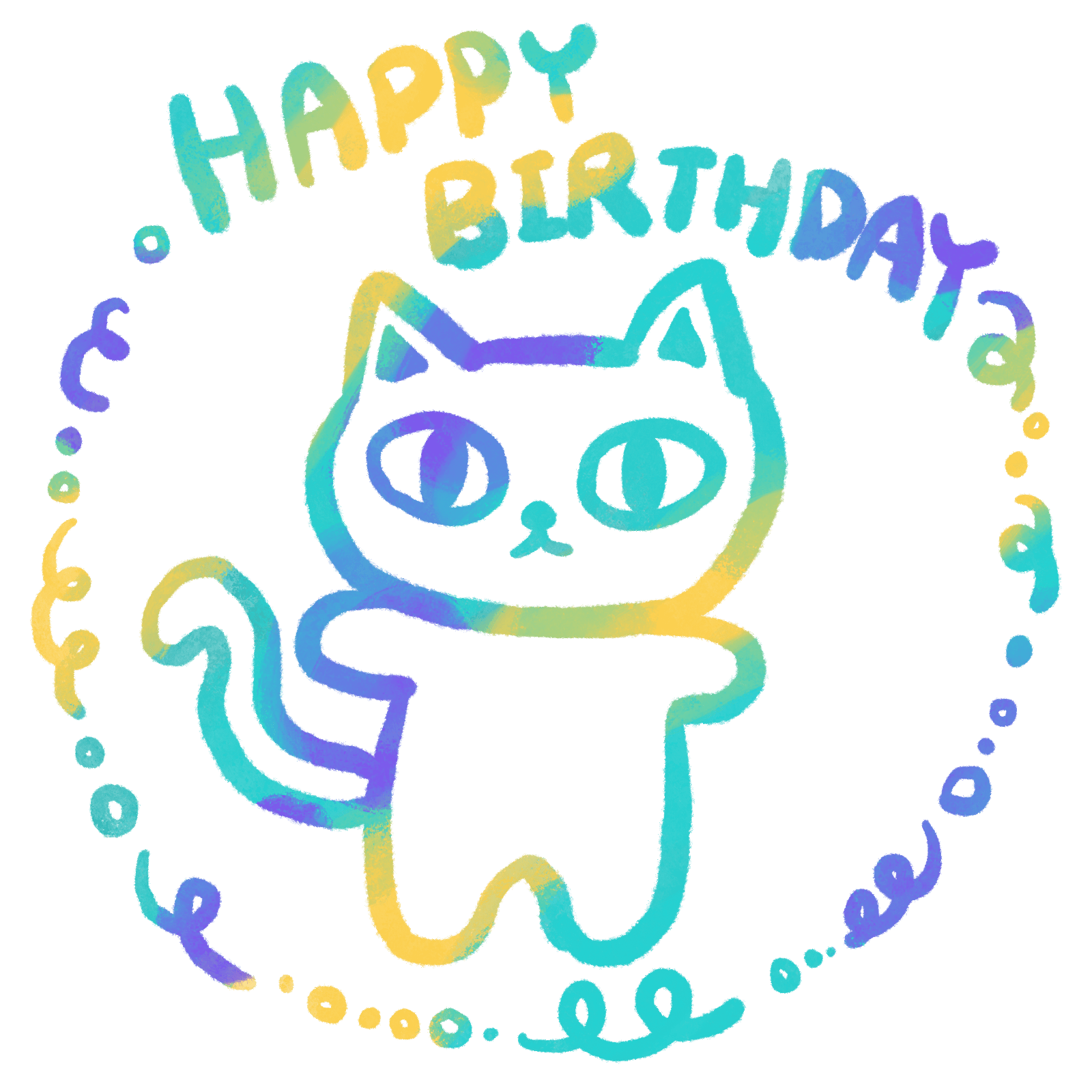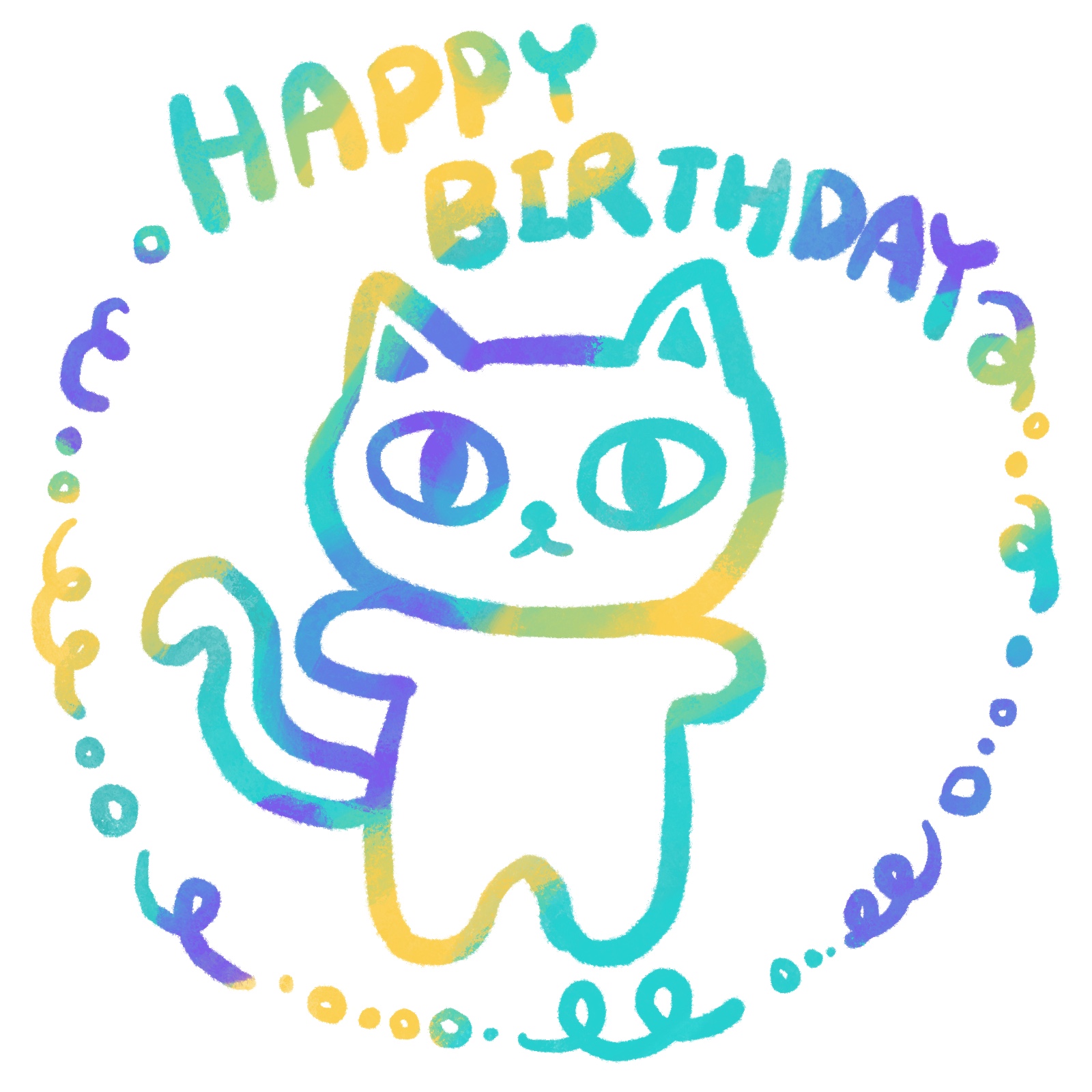 HAPPY BIRTHDAYの文字とねこを水彩風に仕上げたイラストだよ!