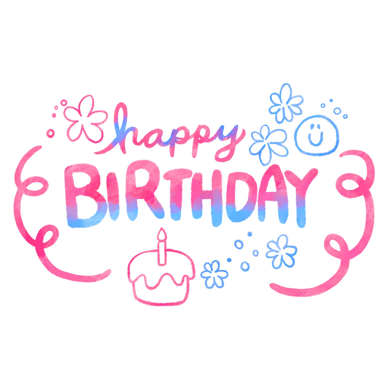 ピンク&ブルーのゆめかわいい配色が目を引くHappy Birthdayの文字イラストだよ!