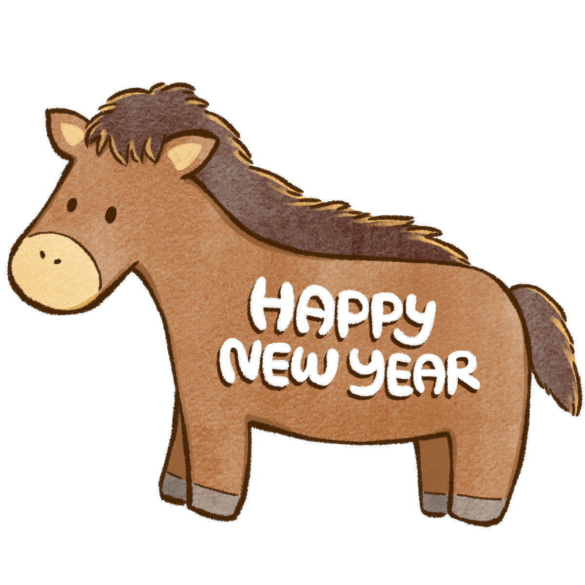 Happy New Yearの文字と馬のイラストだよ。