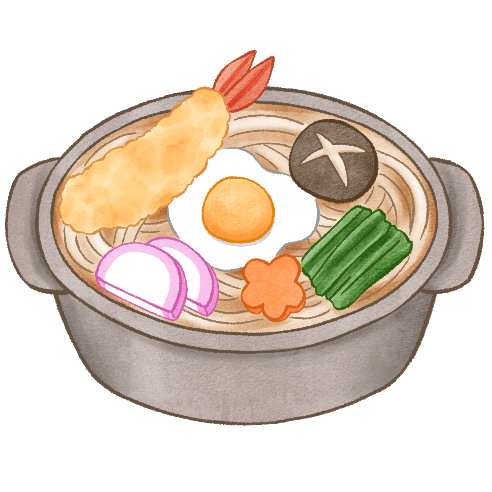 鍋焼きうどんのイラスト 2025.11.042025.11.05 鍋焼きうどんのイラストだよ。寒い季節に欠かせないメニューだね。えび天ものってて、ボリュームたっぷりだ。 上はサンプル画像です。利用規約に同意してダウンロードしてください↓ 鍋焼きうどん JPGダウンロード 鍋焼きうどん PNGダウンロード このイラストが気に入ったらシェアしてくれると嬉しいです(*´ω`*)↓