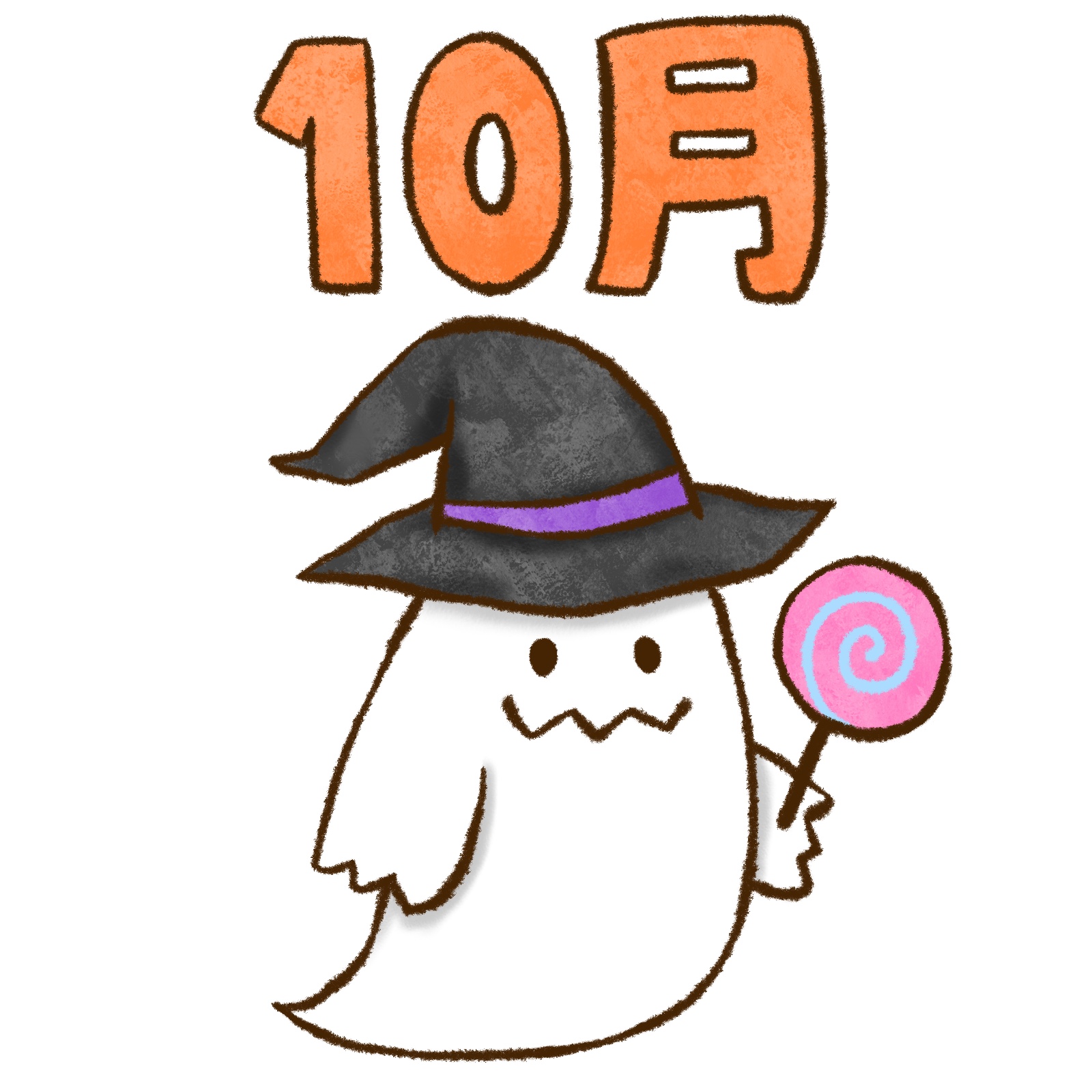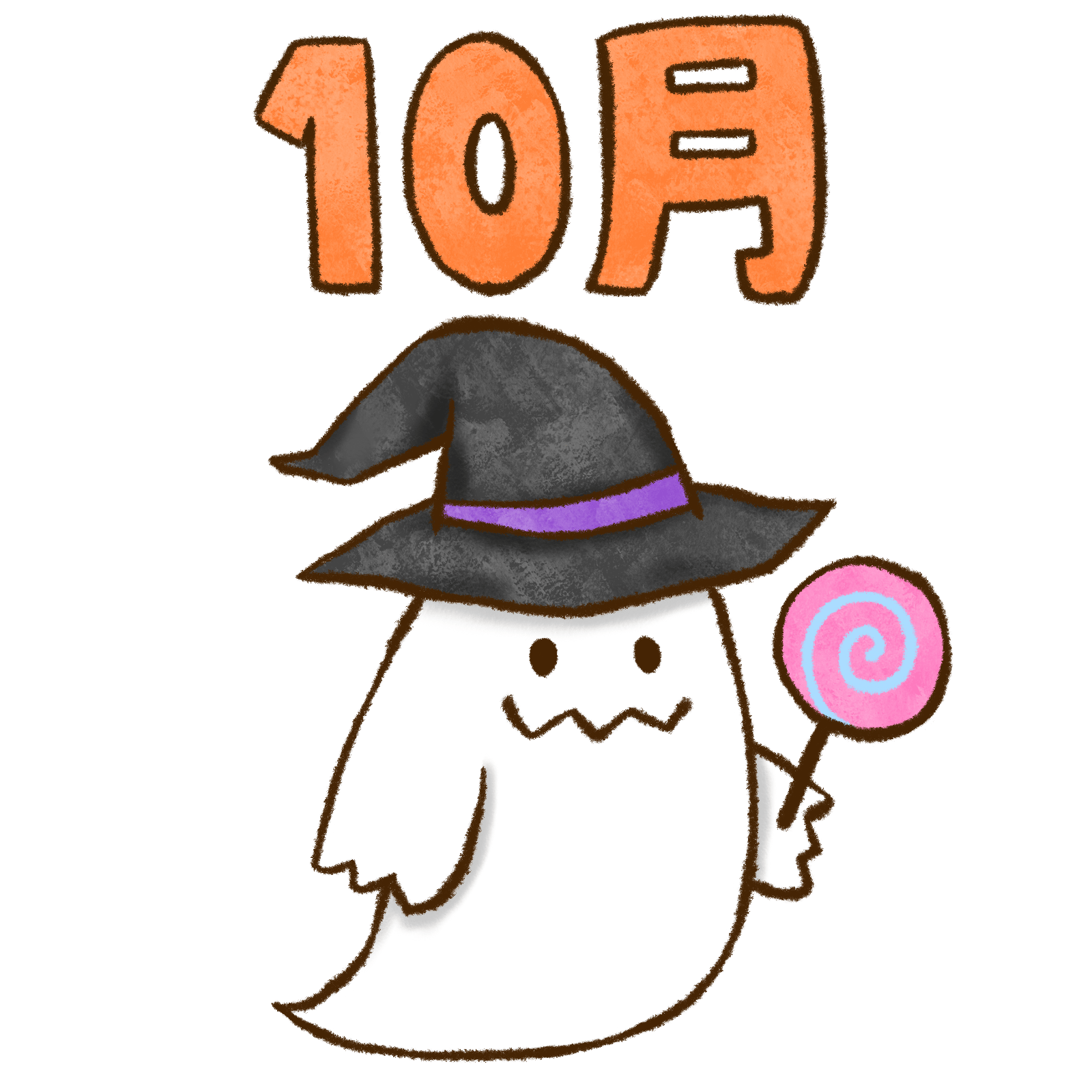 10月の文字と、ハロウィン風の帽子をかぶったオバケのイラストだよ。